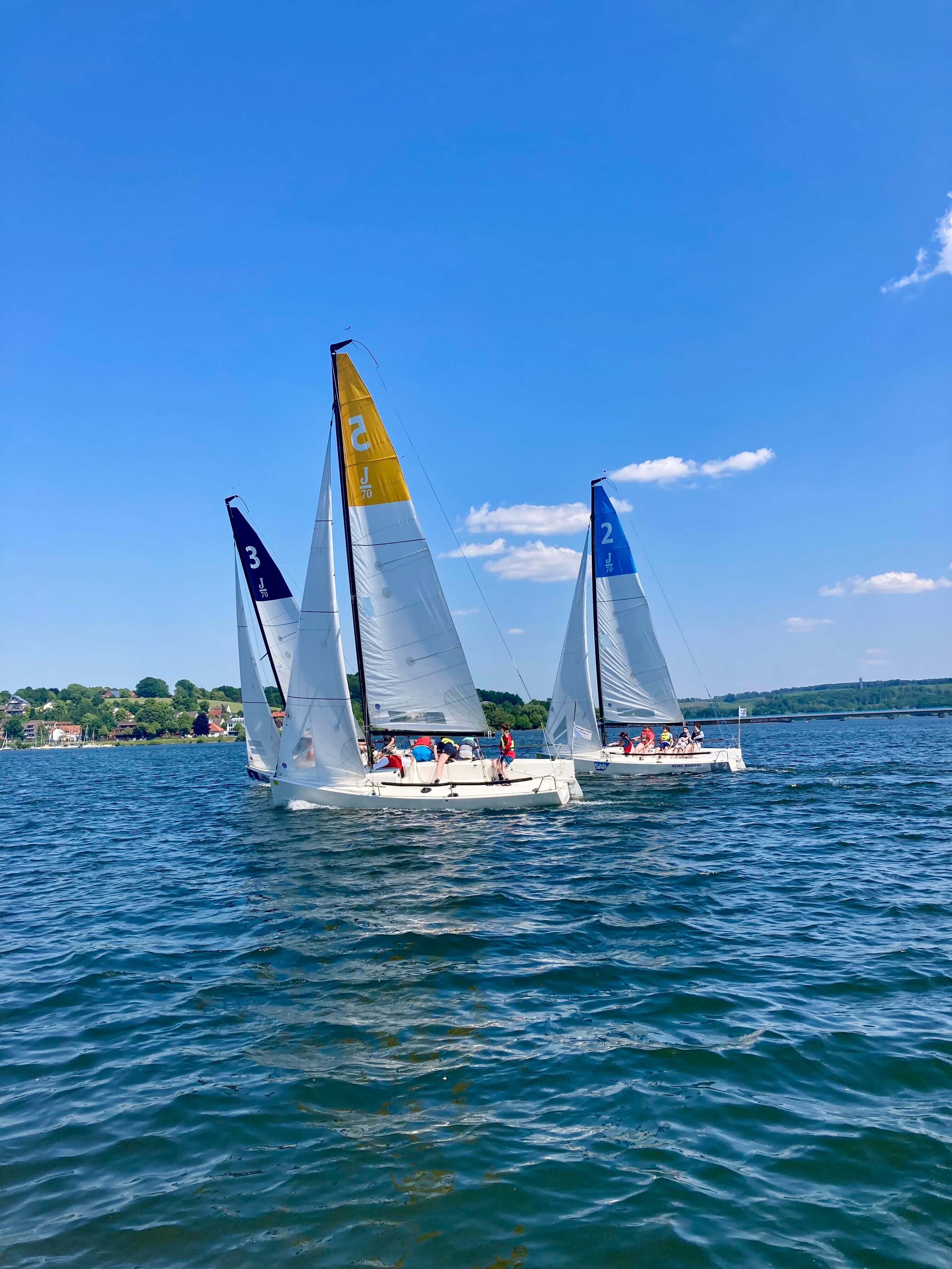 In 10 knackigen Rennen segelten die Teams auf den J-70 gegeneinander, die der Heinz-Nixdorf-Verein zur Förderung des Segelsports zur Verfügung stellte.