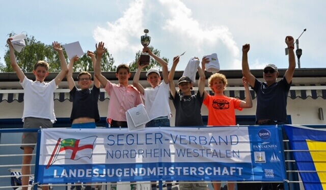 Leonard von Holtum und Josh Berktold (beide ETuF) konnten sich in diesem Jahr auf dem heimischen Revier durch eine konstante Wettfahrtserie (1, 2, 1, 1) den begehrten Pokal für den Landesjugendmeister NRW sichern. Vizemeister (2, 3, 2, 2) wurden Paul Sigge und Konstantin von Holtum (beide ETuF), gefolgt von Tim Kohlschmidt und Lasse Paland (ETuF/SKS) auf Platz 3 (5, 1, 5, 4).