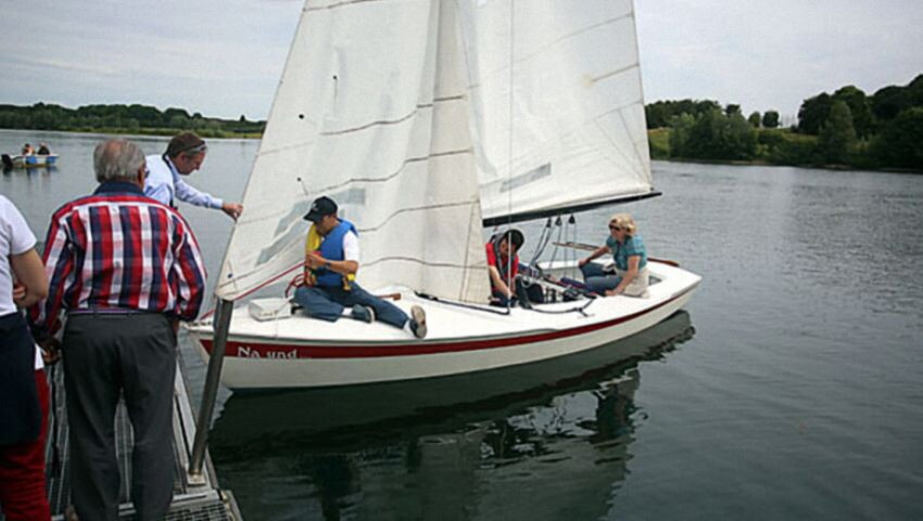 Trotz des schlechten Wetters und des wenigen Windes haben sich blinde und sehende Segelsportler beim SKBUe eingefunden und konnten sich live davon überzeugen, wie sich blinde Menschen durch akustische Signale orientieren und dabei ein Segelboot regattamäßig steuern können.