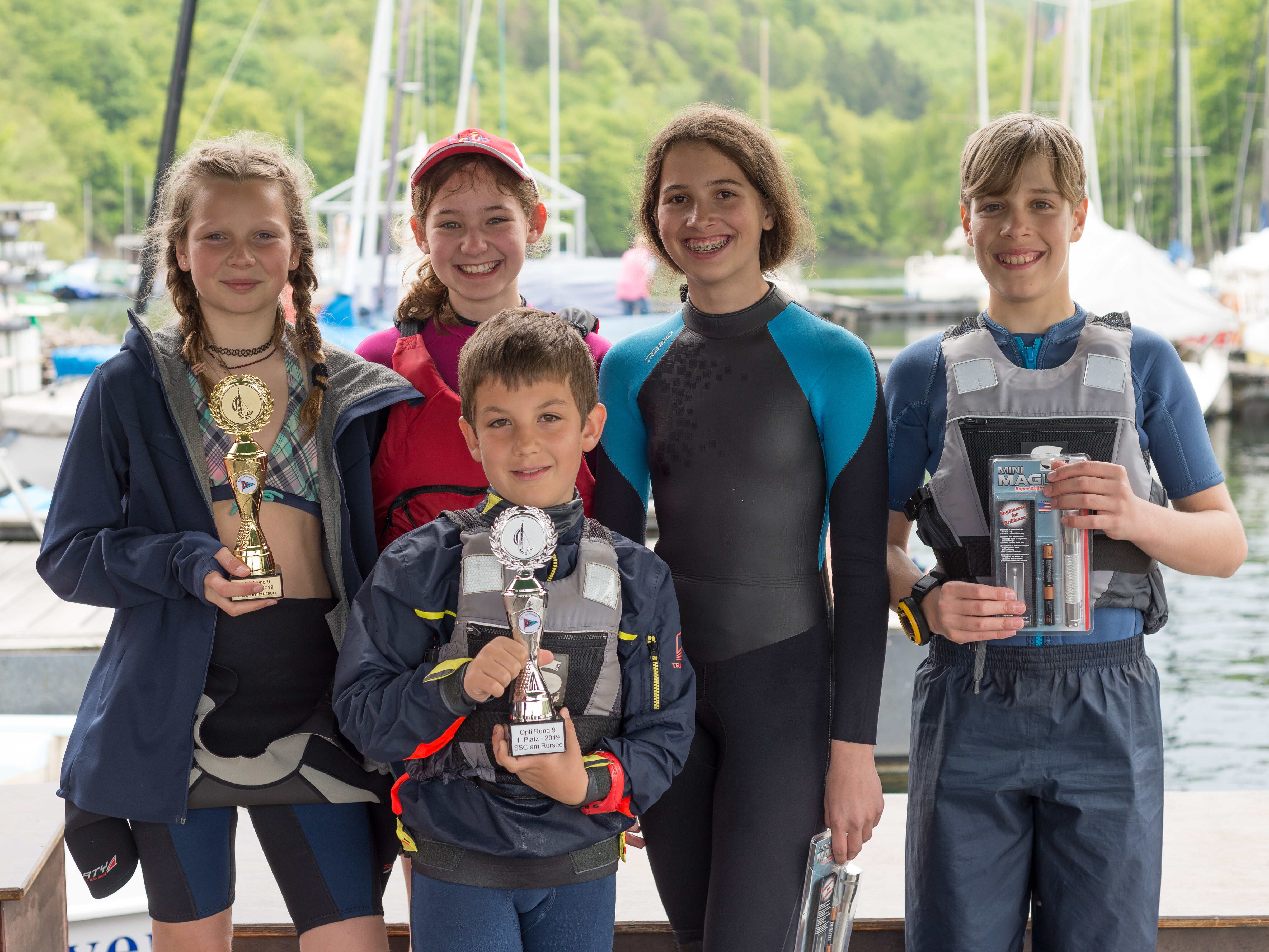 Das stolze Opti-Team des SCJ •von links nach rechts: Lynn Hübner, Annika Büchel, Maurice Müller (vorne), Rebecca Bauer, Erik Ameling, Foto Matthias Classen