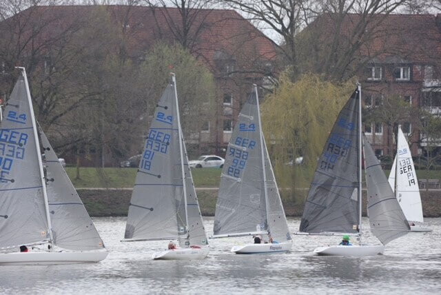 Bei schwachem Wind, mässigem Wetter und äußerst schwierigen Verhältnisse auf dem Aasee dominierten zwei Altmeister – Silbermedailien Gewinner von 1972 Uli Libor (Platz 1 mit ausschließlich 1. Plätzen) und Detlef Müller Bölling (Platz 2) sowie Moritz Jacob (Platz 3) das 22 Boote starke Feld der internationalen 2.4 mR Boote in 5 Wettfahrten. Die schnittigen Einmannkielboote und ihre Crews inder2.4mR Klasse haben sich bei schwierigen Wind- und Wetterverhältnissen auf dem Aasee nichts geschenkt