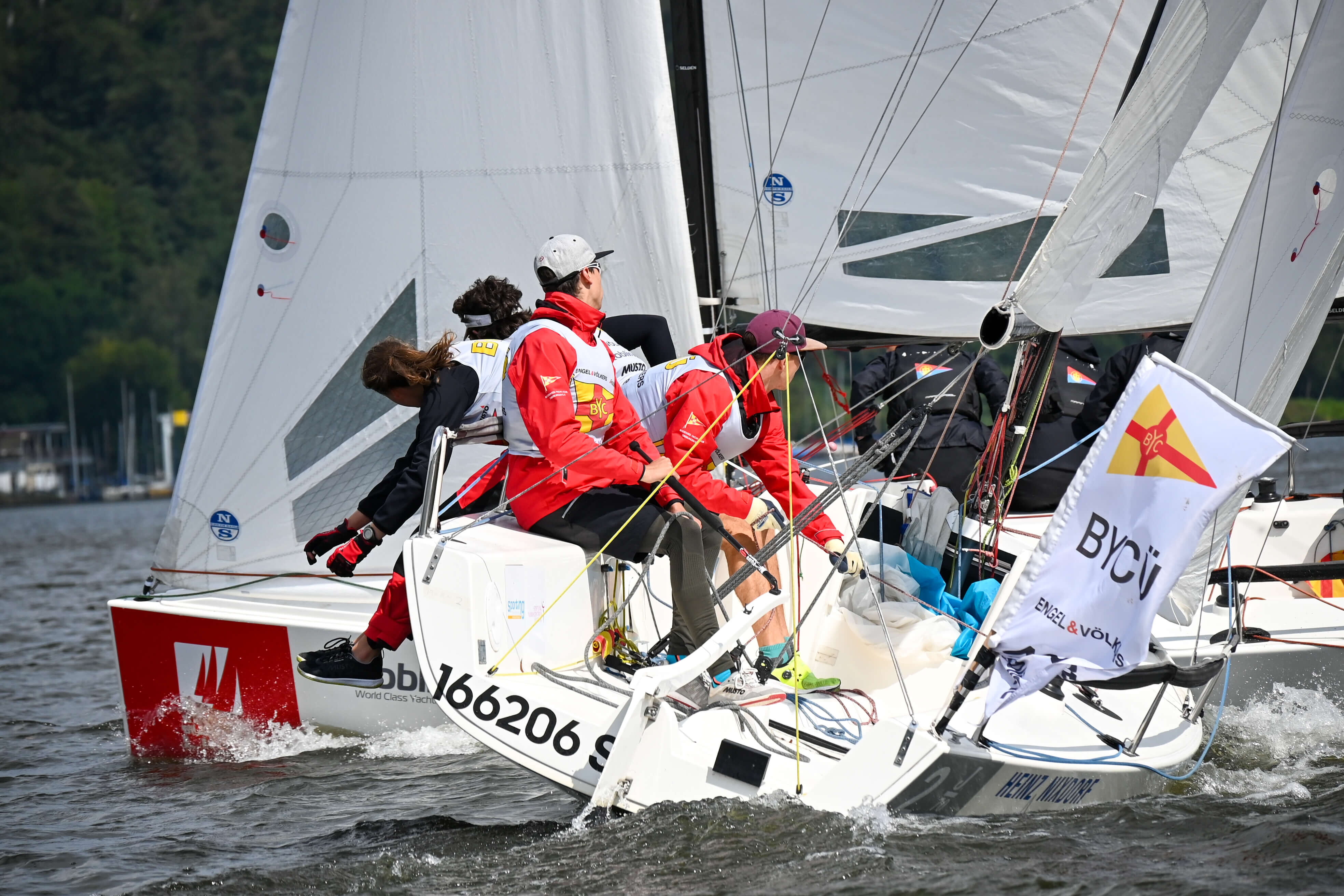 Unser Team bestand aus dem olympiaerfahrenen internationalen Schiedsrichter Jan Stage aus Dänemark, Wolfgang Daum aus Bochum, Christine Guba aus Frankfurt am Main und mir. Leider waren die Wetterbedingungen bei Dauerregen und drehendem Leichtwind nicht besonders gut. Der Wind kam überwiegend aus nördlichen Richtungen auf dem hauptsächlich in West-Ost-Richtung gelegenen Baldeneysee.