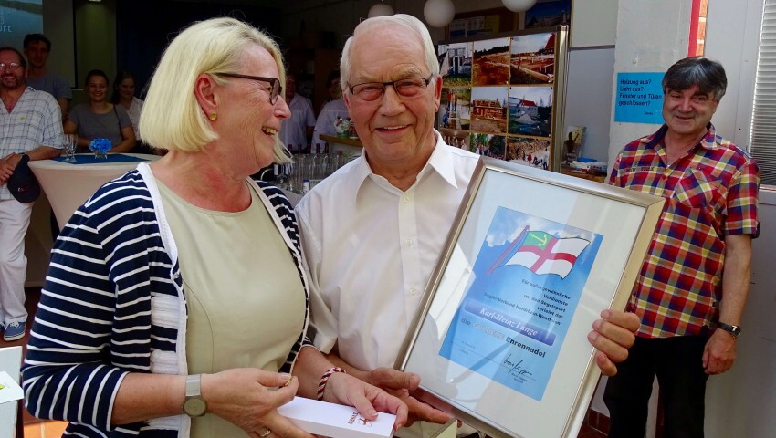 Für herausragende Dienste über mehr als 40 Jahre in seinen Verein Vorwärts Gronau am Dreiländersee wurde Karlheinz Lange mit der goldenen Ehrennadel des SVNRW geehrt.