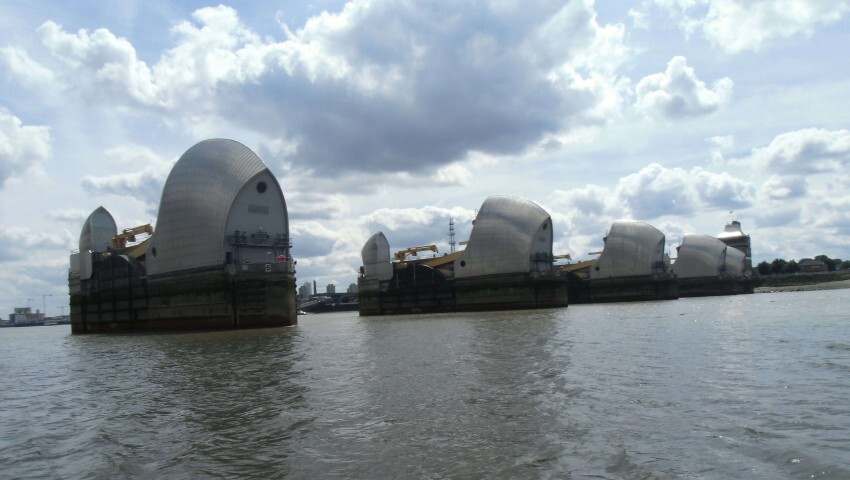Die Herren sind freundlich und akzeptieren meine Stellungnahme. Man muss eben auch mal überzeugen können. Von jetzt an wird – wie versprochen - Funkwache gehalten. Bis zum Sonnenuntergang will ich noch segeln und dann eine Mooring nehmen, wenn vorhanden. Aber das klappt wunschgemäß und die Nacht verbringe ich gemütlich an einer scheuernden Mooringtonne im Schwell der stromab ziehenden Großschifffahrt, romantisch eingerahmt von rostigen Eisenprahms, Behördenschiffen, Schleppern und Hulken. Frühmorgens geht es dann mit der Tide weiter stromauf, etwa nach der QE2-Bridge – der einzigen Brücke bis London City - macht das Aufkreuzen dann keinen Spaß mehr, es wird enger und es gibt viel Abdeckung. So wird das letzte Drittel motort, auch der sicher verändernden Berufsschifffahrt wegen, schließlich bin ich mit reichlich 4 PS ausgestattet (!). Und das Thames Tidal Barrier darf ich eh nur unter Motor passieren, nach vorheriger Anmeldung bei London VTS per VHS (UKW-Funk). Eine überschlägige Schätzung sagt mir, dass der Sprit knapp werden könnte. Doch Marina-Tankstelle am Ufer? Fehlanzeige. Yachtclubs? Nur Moorings = kein Landzugang ohne Beiboot. Also sparsame Marschfahrt. Am Ende bleibt ein 5l Kanister unberührt, als ich mittags zufrieden am Anleger der Limehouse Marina mitten in London festmache.