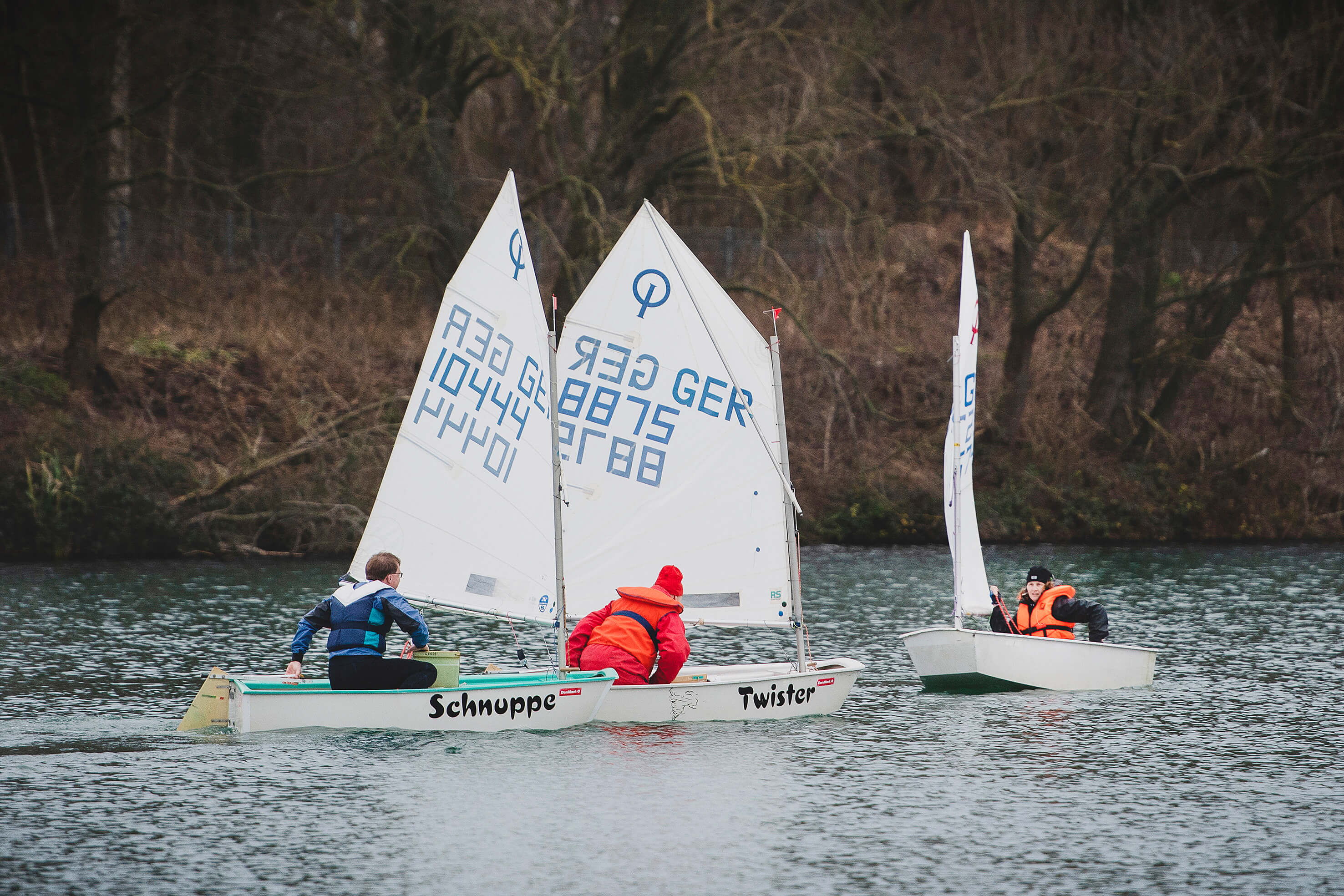 Thorsten Rech, Dirk Postel und Anneke Ratering auf den kleinen Booten Optimisten bei der
