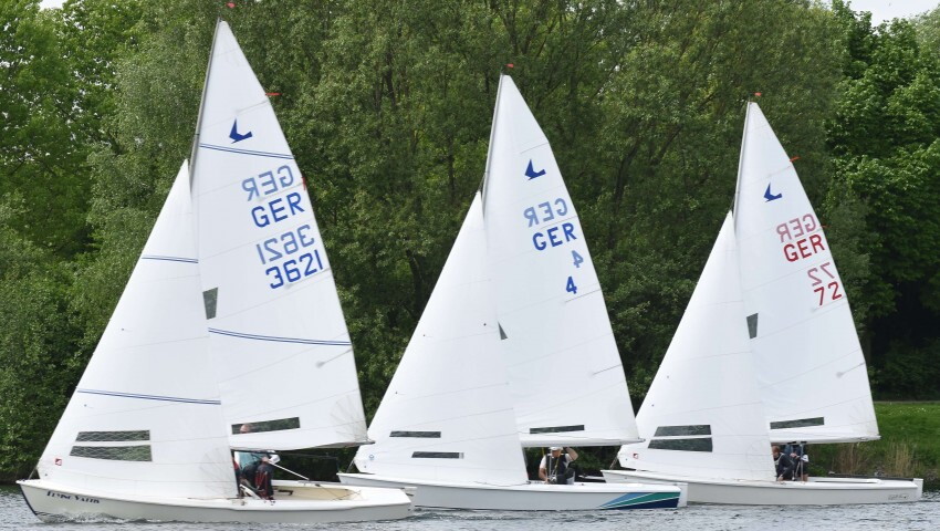 Die diesjährige Landesmeisterschaft in der Schwertzugvogel-Klasse fand im Rahmen der Regatta Goldener Schwertzugvogel am letzten April-Wochenende beim Segelklub Bayer Uerdingen in Krefeld auf dem Elfrathersee statt. Trotz der noch jungen Saison waren die besten Schwertzugvogelsegler aus NRW am Start. Mit dabei der amtierenden Deutsche Vizemeister Jens Liebheim/Benjamin Auerbach (WRK) sowie der amtierende Deutsche Vizemeister im Kielzugvogel und Vorjahressieger Frank Suchanek mit Vorschoter Karsten Idel (SKBUe). Die Windvorhersagen schwankten zwischen 2 und 5 bft. Im ersten Lauf stellte sich dann ein Südwestwind zwischen 2-3 bft. ein. Vom Start an setzte sich die Mannschaft Jens Liebheim/Benjamin Auerbach (WRK) an die Spitze des Feldes und verteidigte die Führungsposition bis ins Ziel gegen die starke Konkurrenz. Zweiter wurde Alexander Morgenstern (DUYC)/Heinz Lenz (SKBUe) vor Dirk Michalke/Uwe Horstmann (WRK). Beim zweiten Rennen wurde gut durchgemischt. Es setzte sich aber wiederum Jens Liebheim mit Benjamin Auerbach gegen Frank Suchanek/Karsten Idel (SKBUe) und Dirk Michalke/Uwe Horstmann durch. Zur Freude aller Teilnehmer gab es nach der zweiten Wettfahrt zur Stärkung auf dem Wasser vom gastgebenden SKBUe eine heiße Currywurst mit Brötchen. So gekräftigt ging es in den dritten Lauf, bei dem das Feld eng beieinander die erste Tonne erreichte, bevor sich die Spreu vom Weizen trennte und am Ende Alexander Morgenstern mit Schotte Heinz Lenz als erste durchs Ziel gingen. Der schwächer werdende Wind ließ leider keine weiteren Wettfahrten am Samstag mehr zu. An Land wurden die Segler mit einem Anlegebier erwartet. Bei einem leckeren gemeinsamen Abendessen und Klönschnack auf der Terrasse wurde der Abend mit Musik gegen 22:30 Uhr beendet.