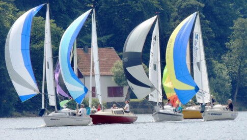 Herrlicher Sonnenschein aber leider ein stark drehender Wind um 2 bft. stellten Wettfahrtleiter Volker Griebenow YCM mit seinem Team vor eine schwierige Aufgabe. Pünktlich um 13.30 Uhr schickte er das Feld auf den Kurs zur 1. Wettfahrt. Bei häufige Führungswechseln setzte sich Luggi mit Tochter Nadine vor Olaf / Andreas und Clemens mit Sven und Arnd + Shorty durch. Uns GER 143 Kai + Wolfgang Kaesewinkel blieb Platz 5. Sofort im Anschluss wurde der 2. Lauf gestartet, den Clemens mit Sven für sich entschieden. Die 3. Wettfahrt sah Olaf und Andreas aus Hannover als Sieger, die damit auch die Gesamtwertung gewannen, da Sonntag keine Wettfahrt mehr gesegelt werden konnte. Luggi und Nadine, die für Berlin starteten wurden 2.