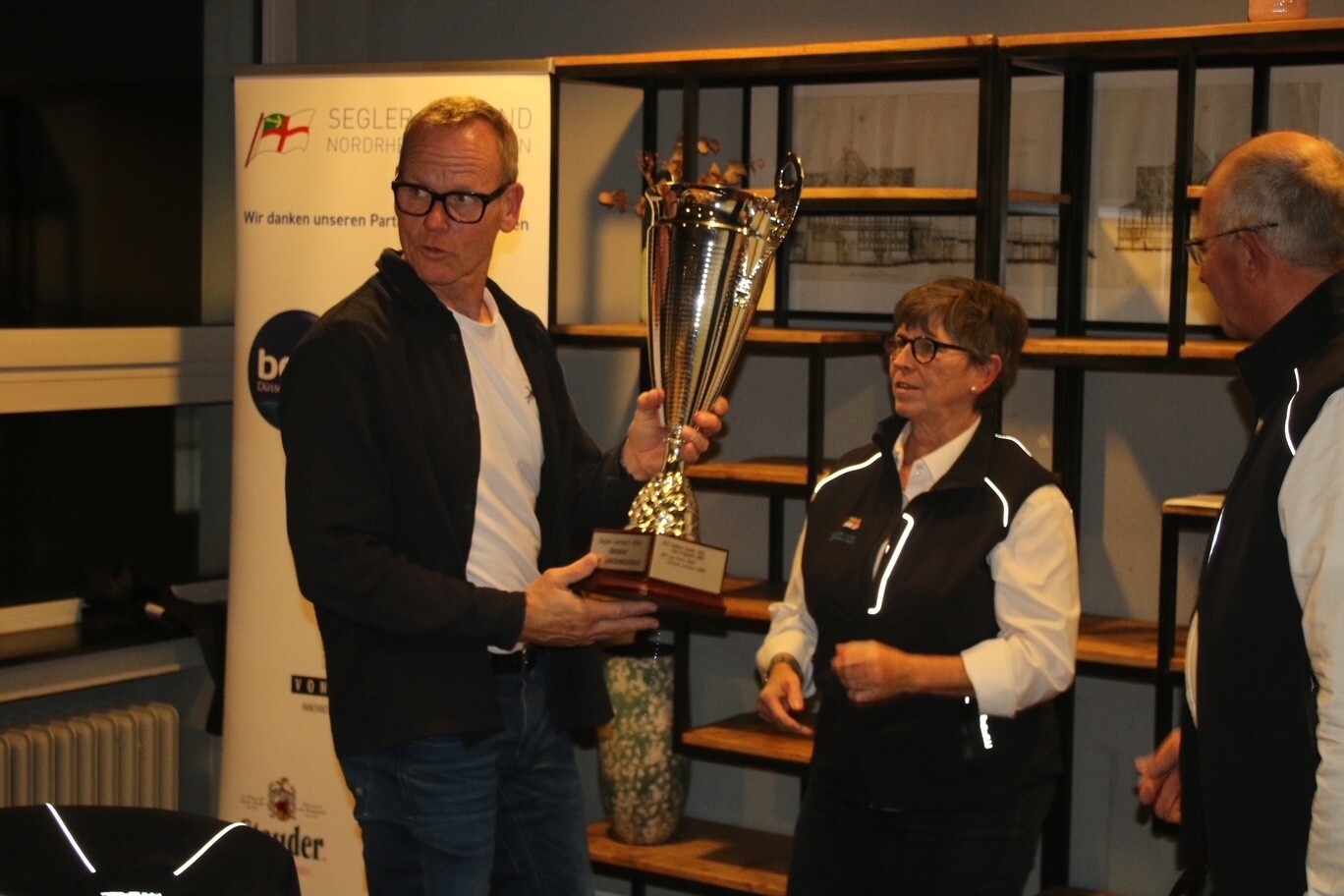 Nachdem sich 24 Teilnehmer gemeldet hatten, gab es keinen Grund, die Regatta wie 2024 aufgrund zu geringer Meldezahlen ausfallen zu lassen. Dass letztendlich einige Segler:innen doch nicht teilnahmen, konnte niemand ahnen. Bei mäßigem Wind, sehr guter Verpflegung und fairen Wettkämpfen konnten am Ende des Tages acht Teams Jens Priewe vom Yachtclub Wesel und Michael Heber vom Duisburger Yachtclub als Meister der Meister küren. Die Ehrung wurde am Abend bei einem Dinner im Bootshaus des ETUF durch den Vorsitzenden des SVNRW, Christoph Zander, und die Ressortverantwortliche Eveline Kleine vorgenommen. Die Ehrung aller Landesmeister findet am 24. Januar 2026 im Rahmen der boot 2026 in Düsseldorf statt.