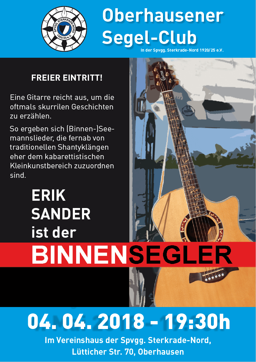 Live beim Oberhausener Segel-Club am 4. April um 19:30 Uhr im Vereinshaus an der Lüttich Str. in 46147 Oberhausen. Der Eintritt ist frei!