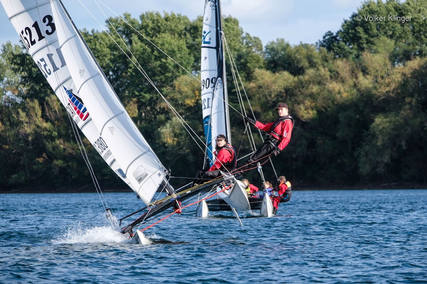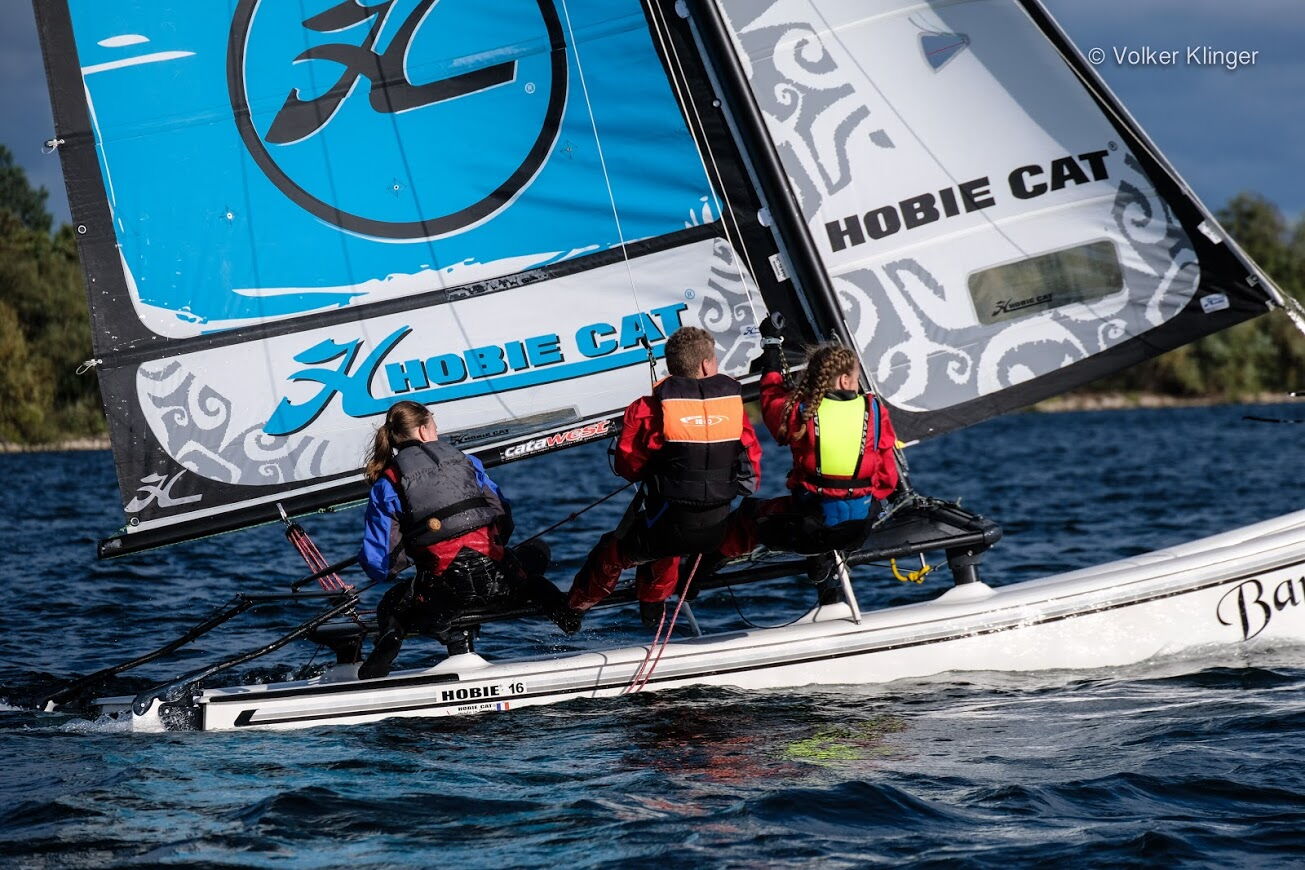 21 HC 14 nahmen an der IDB teil und bei der Ranglistenwertung für HC 16 hatten sich 17 Teams gemeldet. Der Start war pünktlich und die Vorboten von Mortimer forderten die Teilnehmer und ihr Material. Die Böen peitschen über den See und brachten manchen Segler in Bedrängnis und zum Kentern. Materialschäden sorgten leider für diverse Aufgaben und Reparaturen. Auch das DLRG Team war gefordert und konnte hierbei die qualifizierte Ausbildung unter Beweis stellen.