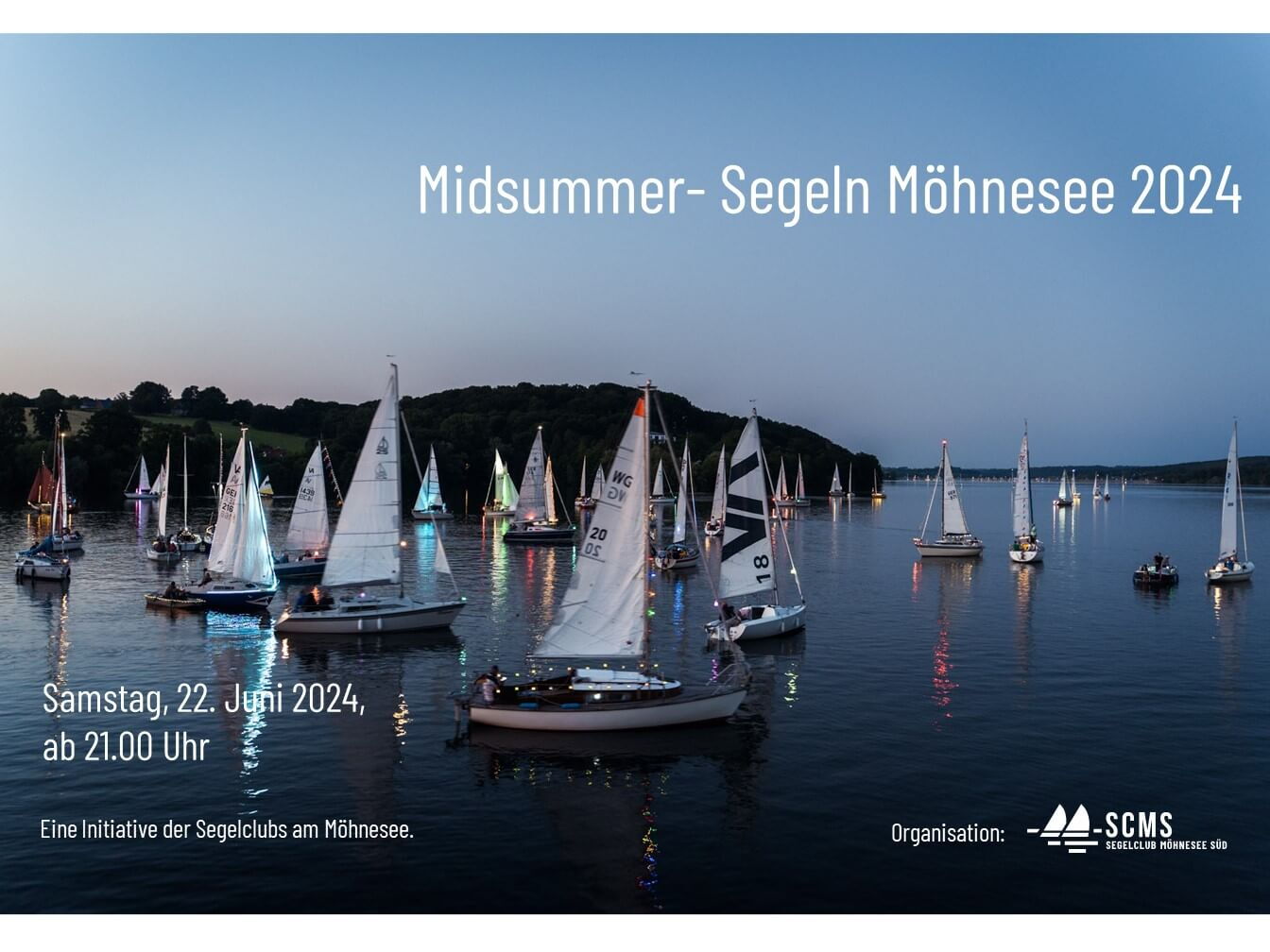 Samstag, 22. Juni 2024 Midsummer-Segeln auf der Möhnetalsperre. Spektakuläres Lichtermeer illuminiert die Wasserfläche.