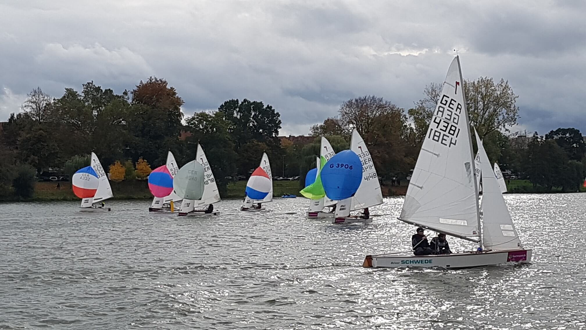 Weil bei den vielen Crews das Feld in vier Gruppen geteilt werden musste - für alle zusammen am Start ist der Aasee nun doch etwas zu klein - ist es eigentlich nötig das mindestens sechs Läufe gefahren werden! Nur so ist jede Crew gegen jede andere Crew angetreten. Da es aber nur am Samstag segelbar war und vier Läufe von Wettfahrtleiter Jules Tronquet gestartet werden konnten, gab es am Ende einige Crews mit gleicher Punktzahl und somit Zwei 1., zwei 2. Und eine dritte Crewund so weiter. Siegercrews wurden somit Svenja Thoroe (SYS) / Femke Gosch SVB zusammen mit dem mehrfachen Gewinner Karsten Bredt (HYC) / Falko Ronnebaum (SCC) von den zweiten Carsten Wiegel / Thorsten Krug (SCM) und Tobias Call/Nick Houben vom ABC. Dritte wurden Mats Fritsche (ABC)/Frida Meltzner (BSC)