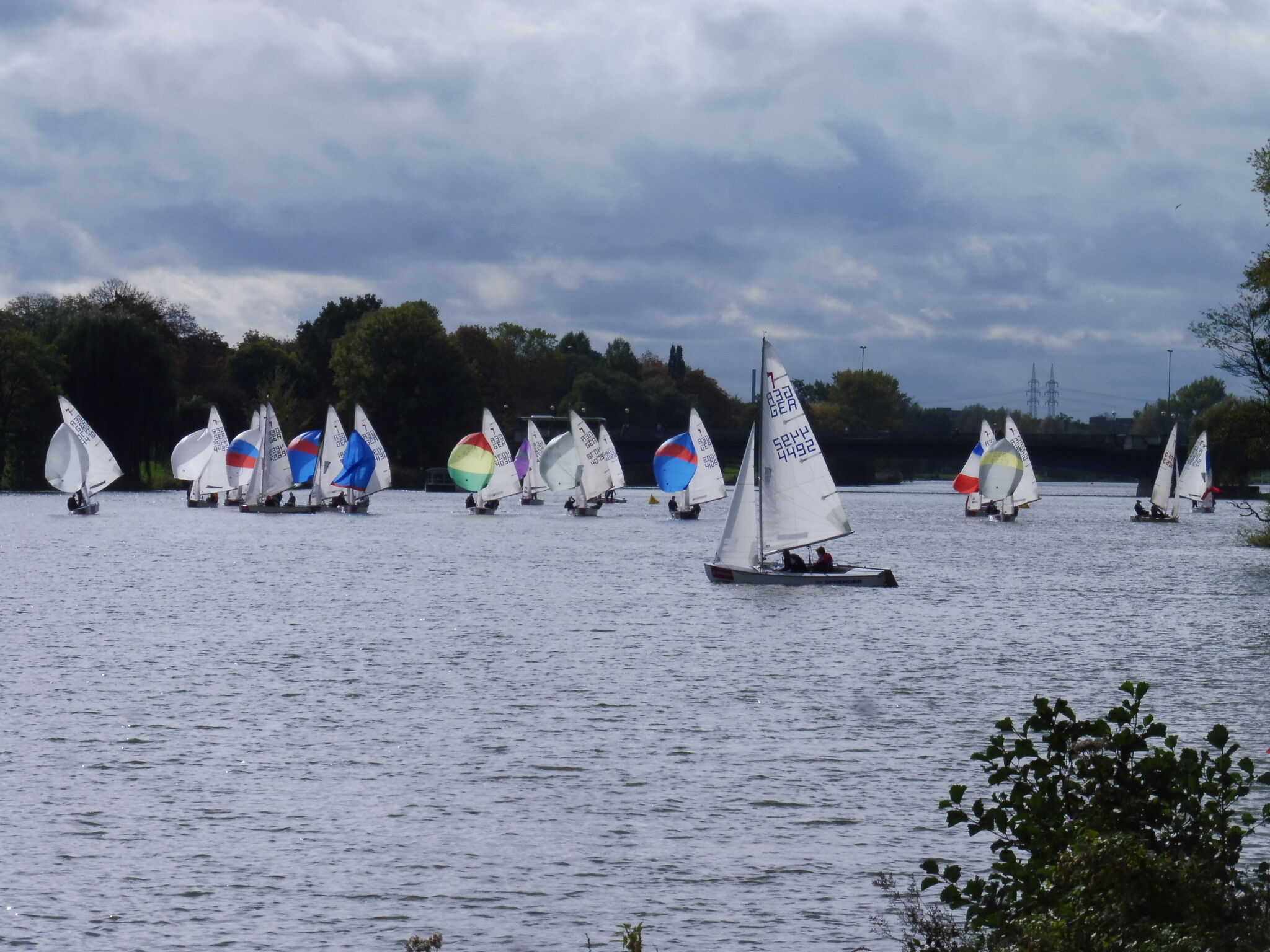 War das Wetter am Samstag noch annehmbar mit gutem Wind und nur gelegentlichen mit Regenschauern durchsetzt, so gab es am Sonntag nur satt Regen, aber überhaupt keinen Wind. Klar es gibt ja auch die alte Seglerweisheit: Kommt erst der Wind (Sa Nachmittag) und dann der Regen (So), dann kannst Du dich ruhig schlafen legen. Genau so kam es auch.