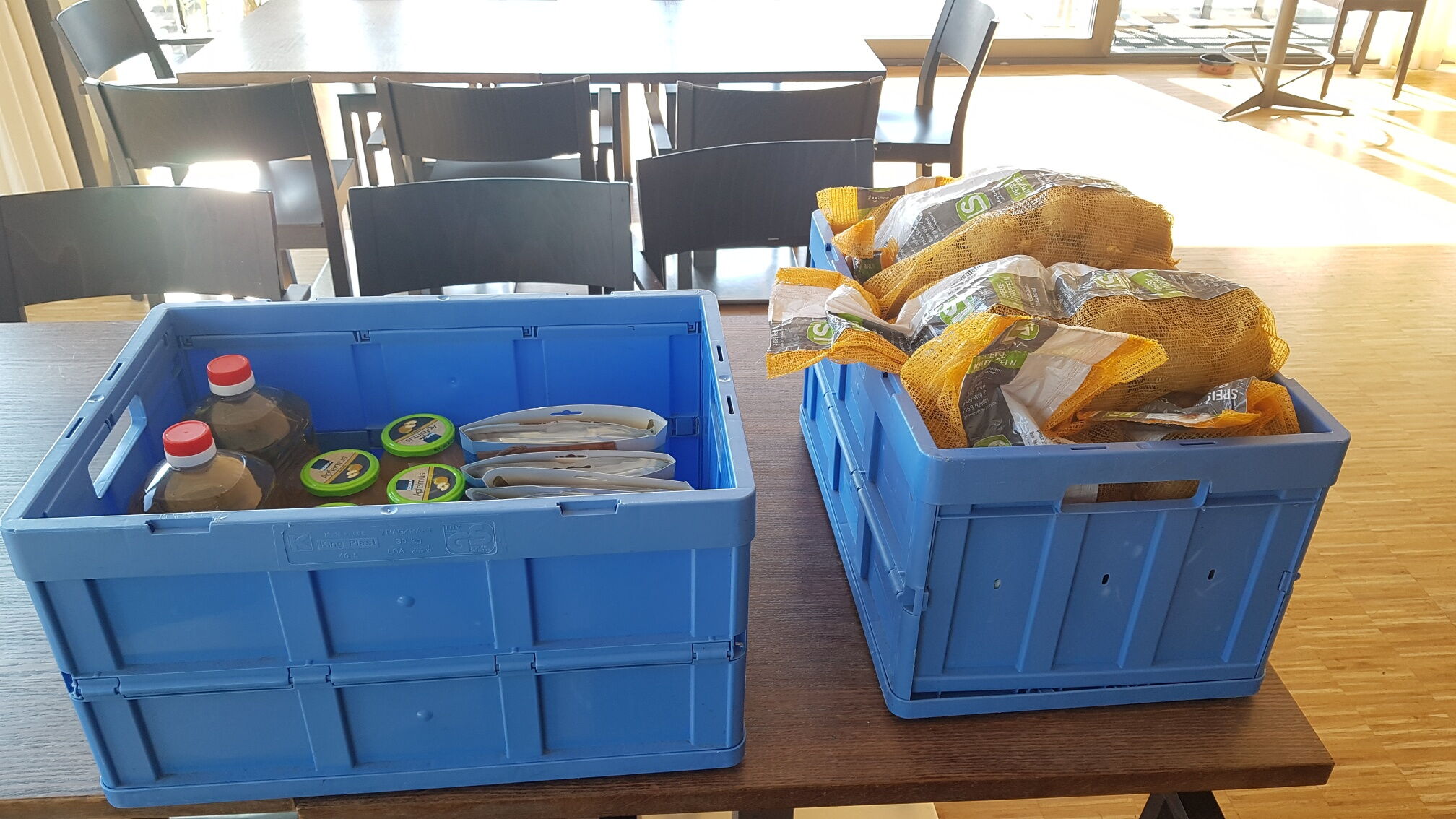 Es gab große Begeisterung bei den Tafel Mitarbeitern über die Mengen an frischen Kartoffeln, Öl, Apfelmus, Lachs, Rübenkraut und Co., die der SCM angeliefert hatte.