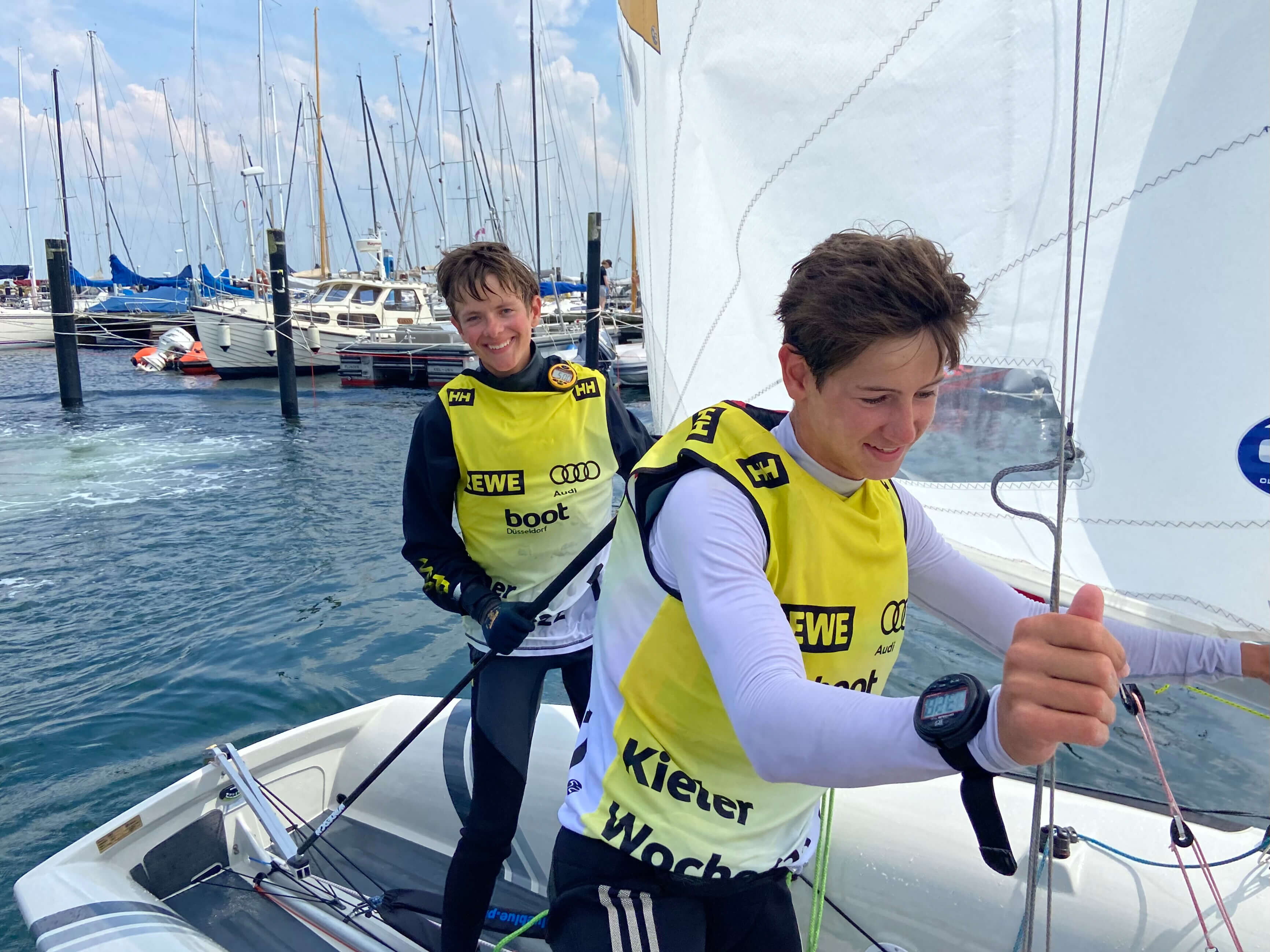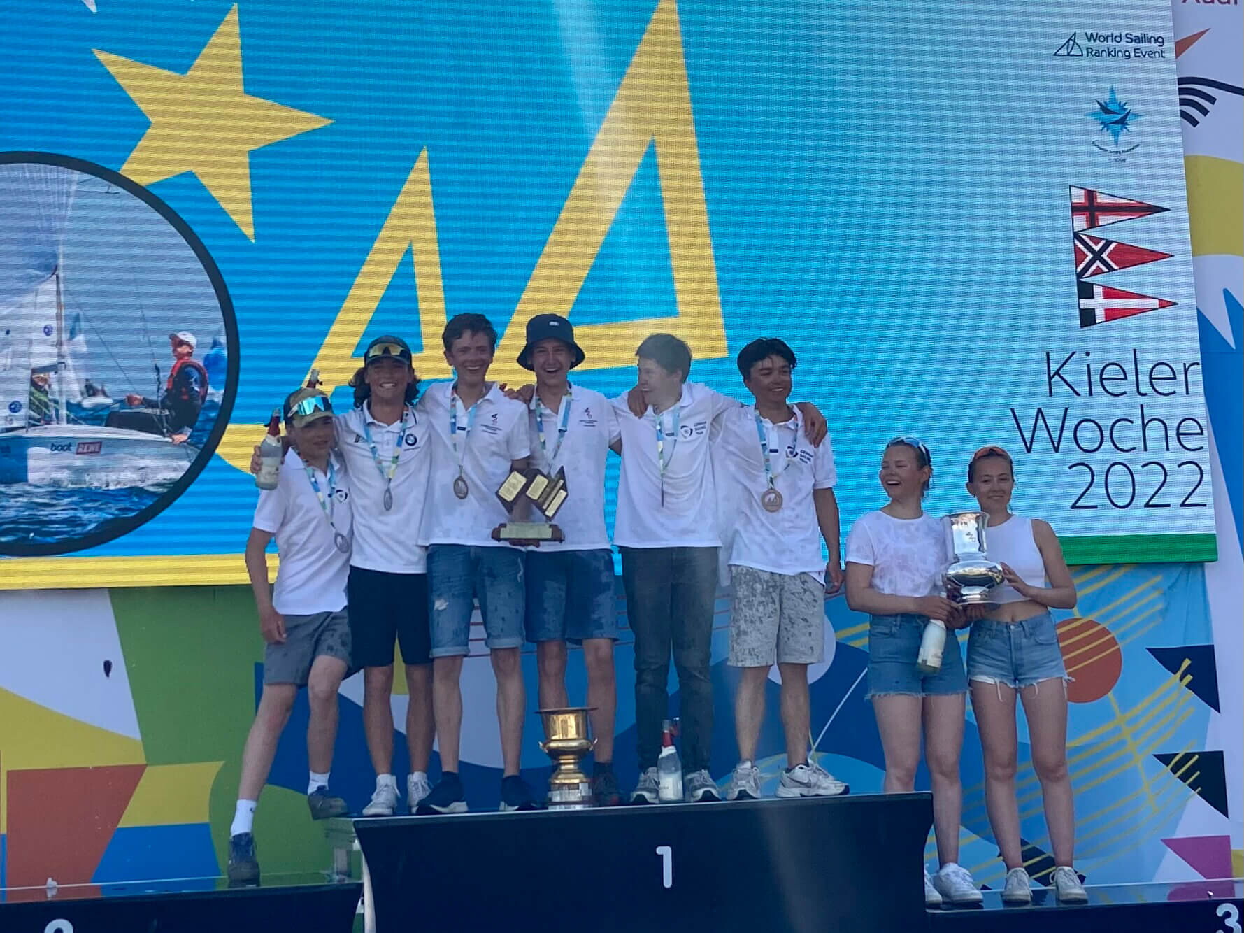 „Die Kieler Woche ist eines der größten Segelsportereignisse der Welt! Das war eine richtig schöne Woche!“, resümieren die Jungs, die seit dem Frühjahr 2021 zusammen in einem Boot sitzen, die möglicherweise beste Rennserie (3; 3; (17); 3; 2; 4; 1; 2) ihrer noch jungen gemeinsamen Segelkarriere.