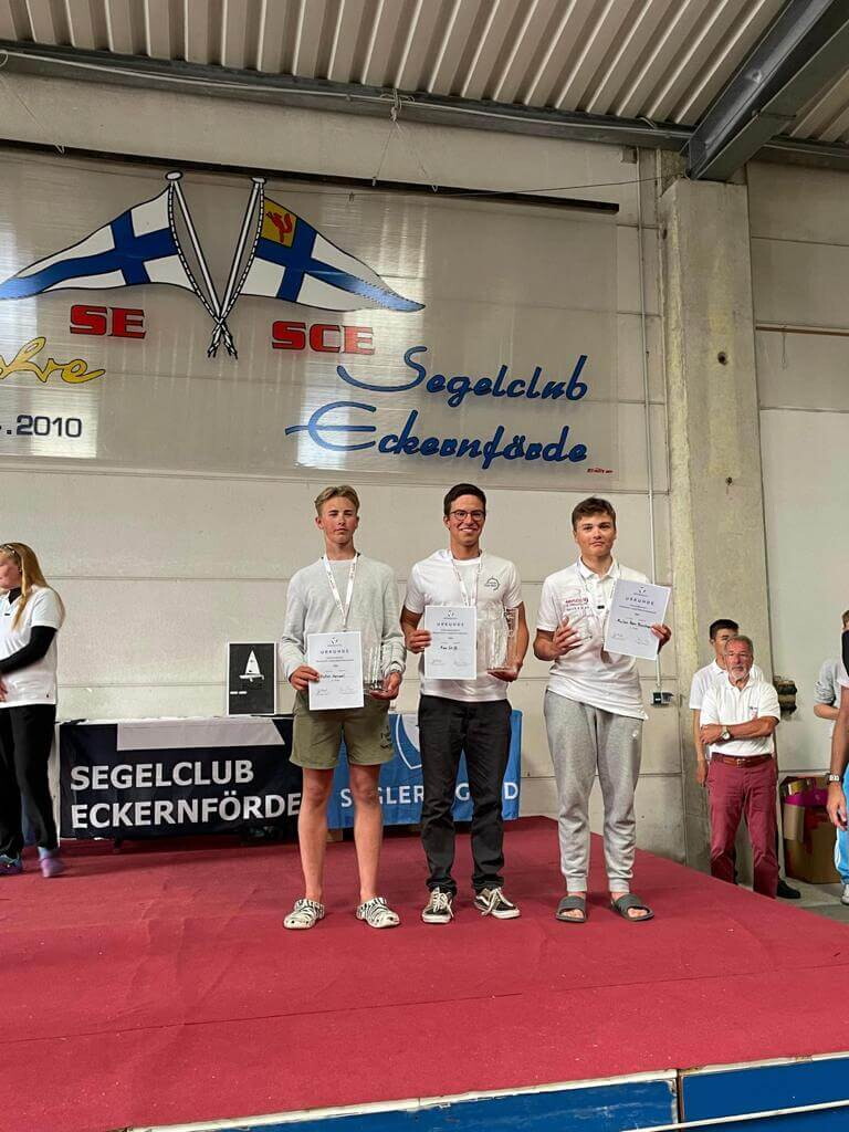 Besonders groß war die Freude, weil auch Platz 2 und bestes Mädchen an Clara Bonhagen (ZSK) aus meinem Team ging, sowie auch noch Platz 3 an Jonathan Brinkmann (YCL) ebenso aus dem Team West. Was für ein Erfolg für unser gesamtes Team West, da auch der Sieg im ILCA 6 von Max Stiff (SHM) geholt wurde und viele weitere gute Platzierungen von SeglerInnen unseres Teams erreicht wurden.