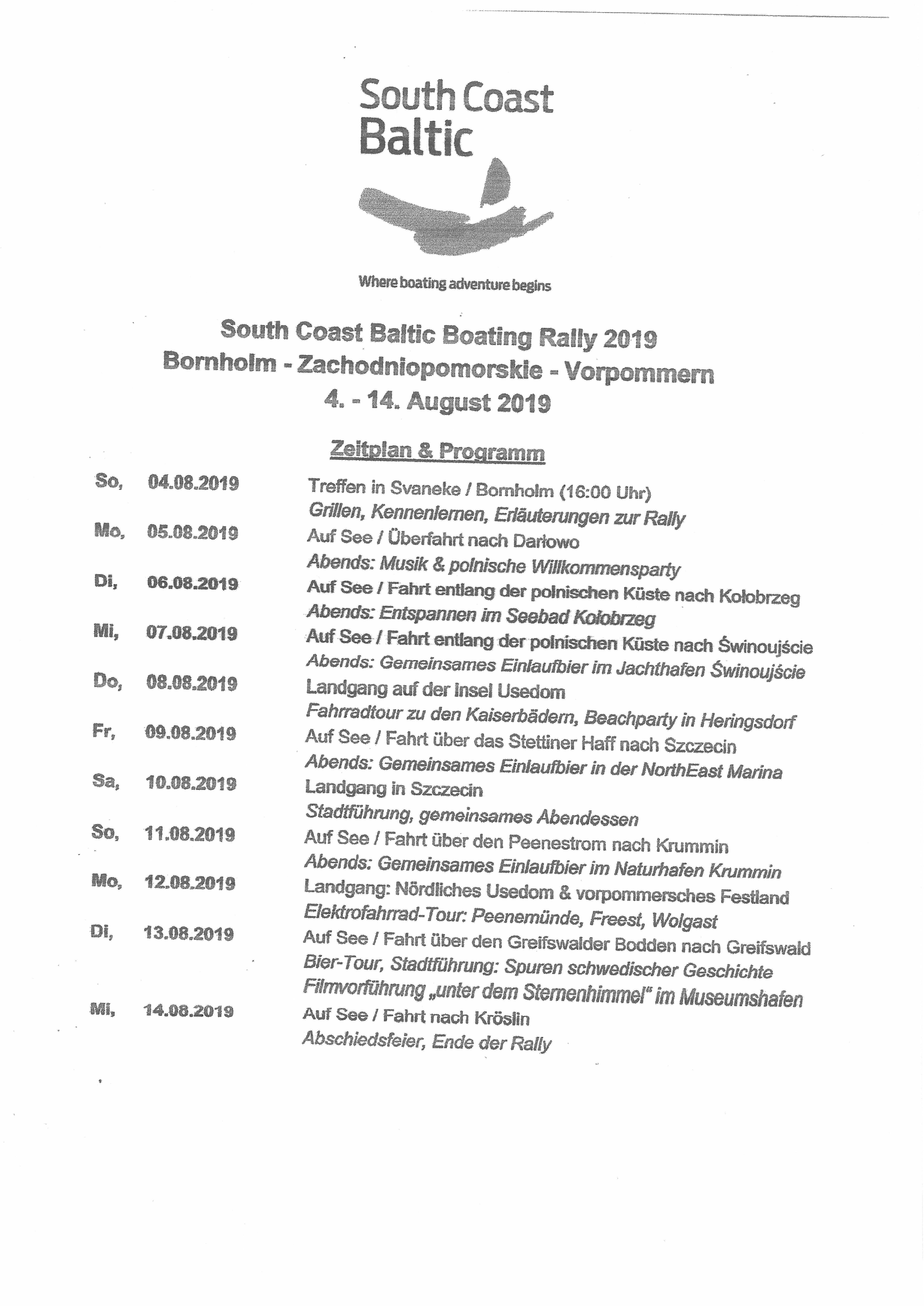 Vom 04. bis zum 14. August fand unter der Marke South Coast Baltic, eine Marketinginiative zur Steigerung des Bekanntheitsgrades des Wassersportreviers südliche Ostseeküste, gefördert durch die Europäische Union, eine Rally im grenzüberschreitenden Rahmen statt.