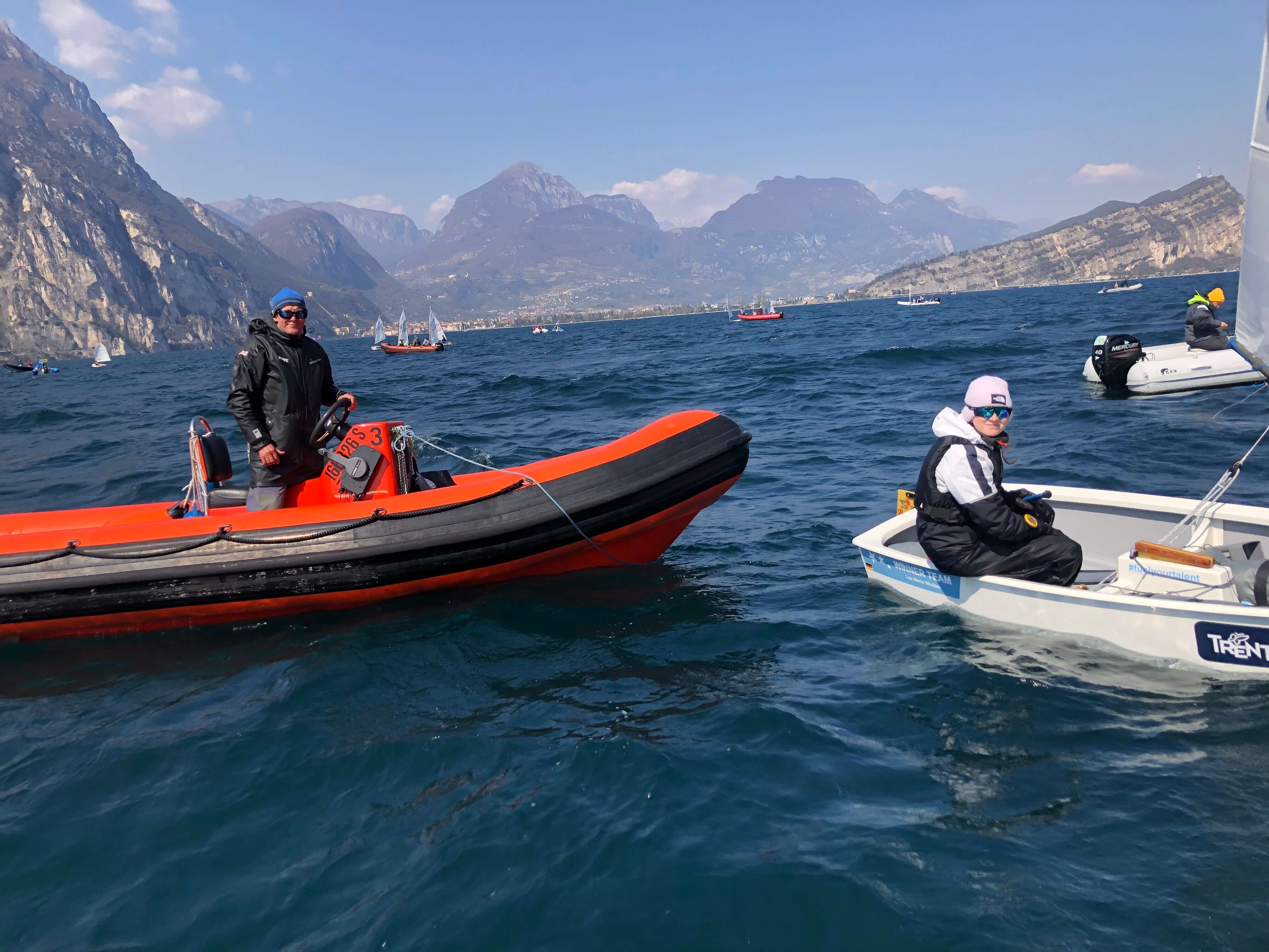 Mit den Trainern George Blaschkiewitz, Max Sporleder und Tim Kirchhoff begann das gemeinsame Team-West-Training für die Optimisten am Gardasee.