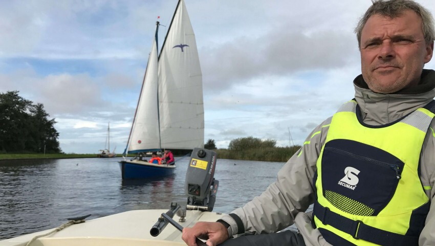 Nach einer Mittagspause an einer der schönen Inseln im Heegermeer, ging es zurück Richtung Heeg. Vor Heeg stellte sich Hayo zu Verfügung, um die geübten Bojen-Manöver mit einer realen Person durchzuführen. Er schien dabei riesigen Spaß zu haben, an die zehn Mal ins Wasser zu springen. Nach dem Abendessen noch einmal gesegelt. Kanalsegeln ohne Motor stand auf dem Programm. Von Heeg über Woudsend zurück nach Heeg waren wir noch einmal 2 ½ Stunden unterwegs. Dabei ging es darum, um die Kurse am Wind und insbesondere Kreuzen in den Kanälen zu üben. Die untergehende Sonne bot dabei eine Kulisse, die gerade in Friesland ein wunderschönes Naturpanorama ist. In der Unterkunft wurden am Abend weitere theoretische Fragen aus dem umfangreichen Kompetenzen Katalog für die Trainer-C Ausbildung zum Thema gemacht.