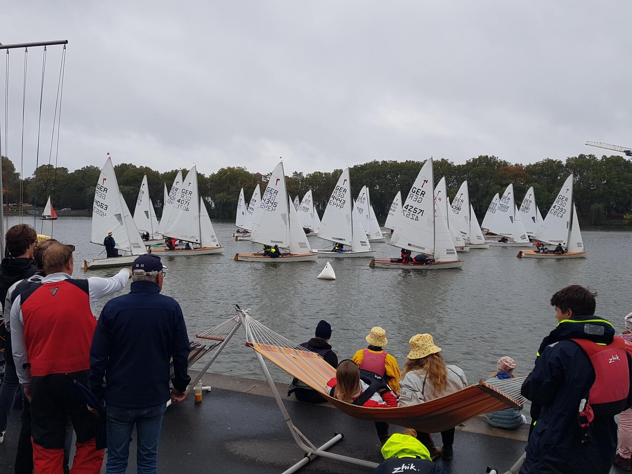 Besonders bemerkenswert war der vierte Platz von SCM-Clubchef Matti Unger (38) mit seinem 9jährigen Sohn Julius. Die Starts unmittelbar am Spazierweg am Ufer bei der Bastion waren für die Zuschauer in der Segelarena am Aasee ein tolles Erlebnis. Laufend wurden die Abläufe für die Spaziergänger und Zuschauer, aber auch für die pausierende SeglerInnen über Lautsprecher erläutert und die Ergebnisse durchgegeben.