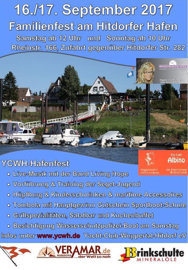 Der Yacht-Club-Wuppertal-Hitdorf e.V. veranstaltet am 16./17. September 2017 wieder sein jährliches,öffentliches Sommerfest.