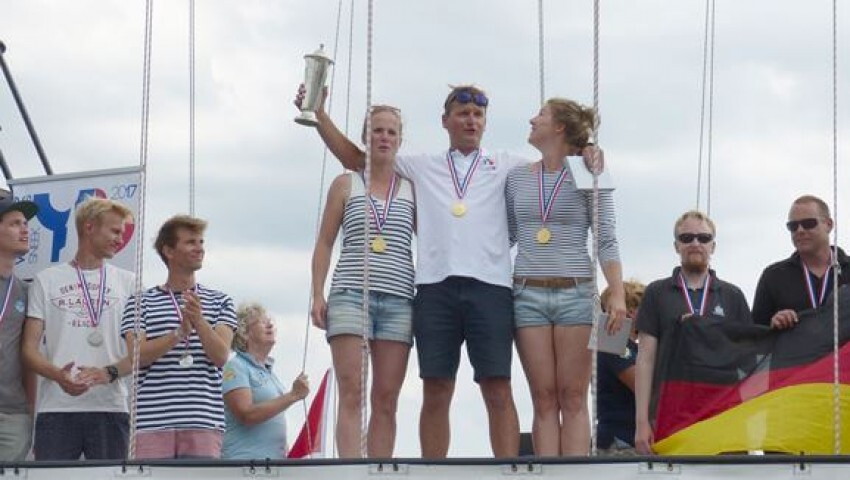 Weltmeister 2017 ist das Team NED 328 mit Tom Otte, Jeldau van der Werf und Floor Otte - de Vries, 2. und Gewinner der Silbermedaille ist das Team DEN 263 mit Lucas Lier, Mikkel Nørrelykke und Frederik Zafiryadis, 3. Und der Gewinner der Bronzemedaille ist das Team GER 1 Thorsten Schutt, Veit Bücken und Kai Morwinski.