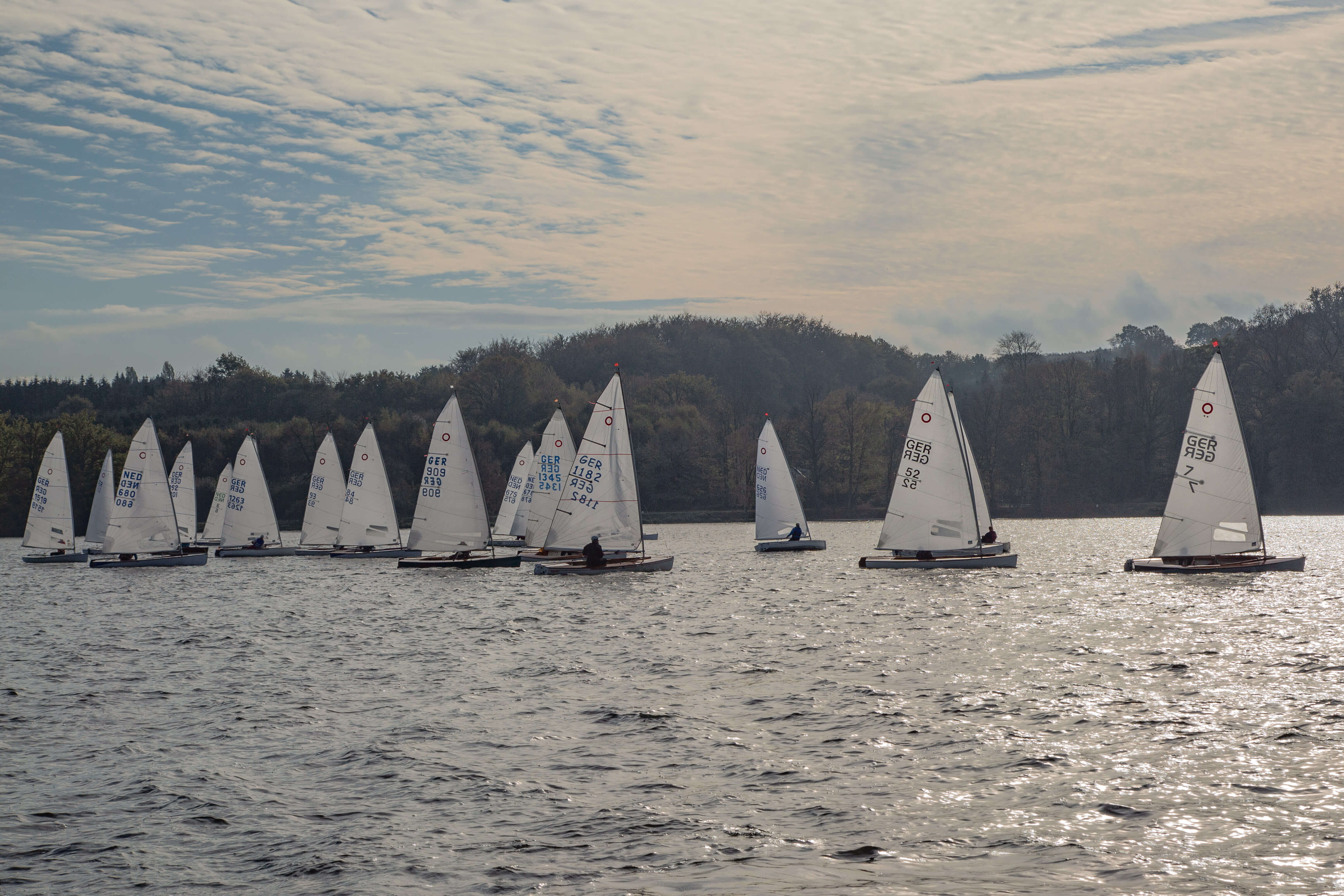 Am Sonnabend gingen bei bestem Herbstwetter mit Indian-Summer-Feeling - der Wind blies frisch aus südwestlicher Richtung (3 Bft.) - von den 31 gemeldeten Seglern 30 Teilnehmer an den Start. Pünktlich um 12.00 Uhr ertönte das erste Startsignal. Vier Wettfahrten konnten wie geplant stattfinden. Klarer Sieger des Tages war Jan Willem van den Hondel, gefolgt von Luuk Kuijper (KZC) und Jan Ten Hoeve vom PSV Plön.
