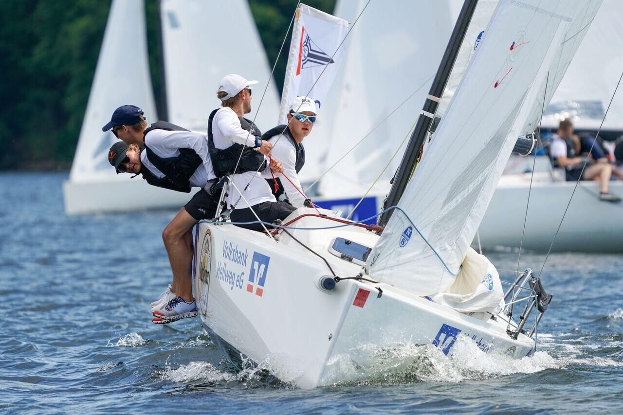 Nach nur 3 Flights am Sonntag und 5 am Samstag, haben wir so an 2 Tagen 8 x 3 = 24 Rennen gefahren und sahen den BYCÜ als Sieger nach spannendem Fight mit den Kielern vom KYC. Stark auch VSaW, LSV und der BohYC.