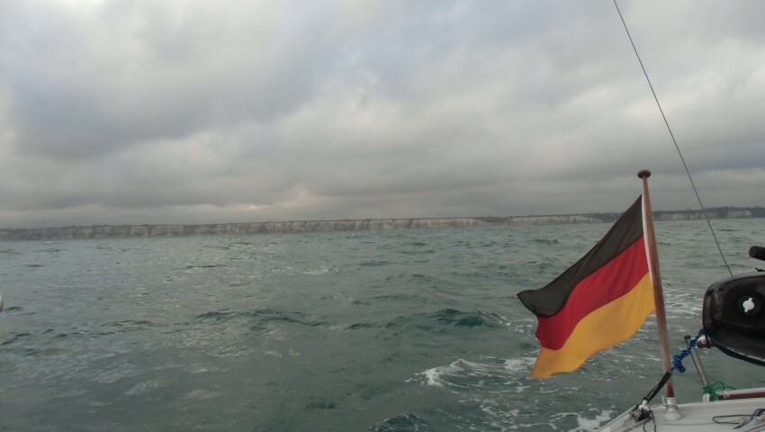 Dover wird am folgenden Tag bei den vorherrschenden Wind- und Stromverhältnissen nicht geschafft und so ist in Ramsgate der Segeltag zu Ende. Am nächsten Tag steht dafür Eastbourne oder Brighton auf dem Plan, aber da habe ich die Rechnung ohne Rasmus gemacht. Es brist mächtig auf, es steht ein Seegang gegenan, der nicht von schlechten Eltern ist und die Sicht wird zunehmend schlechter. Noch geht es aber und schnell ist wieder das 1. Reff eingebunden. Ein nicht allzu gemütlicher Tag, der Gabi zeigt, wie schön H-Boot-Segeln auf der SW-Nordsee sein kann, Salzdusche in dichter Folge inklusive. Dover wird angesteuert und die Gentlemen von Dover Port Control lassen uns unter Segeln das Eastgate passieren.