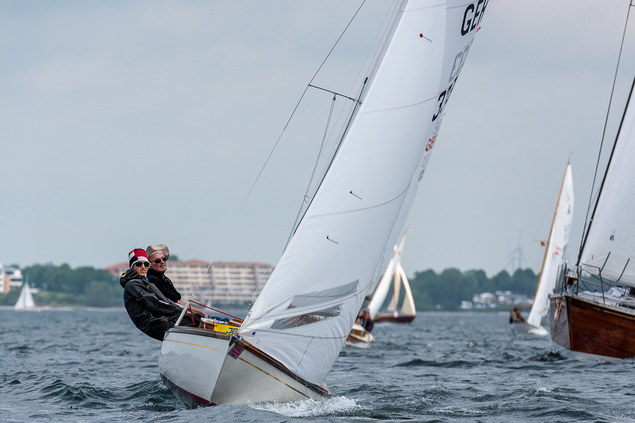 Bei der Max-Oertz-Regatta handelt es sich um einen Wettkampf mit unterschiedlichen klassischen Holzyachten, die in verschiedenen Gruppen, je nach Größe, gegeneinander segeln.