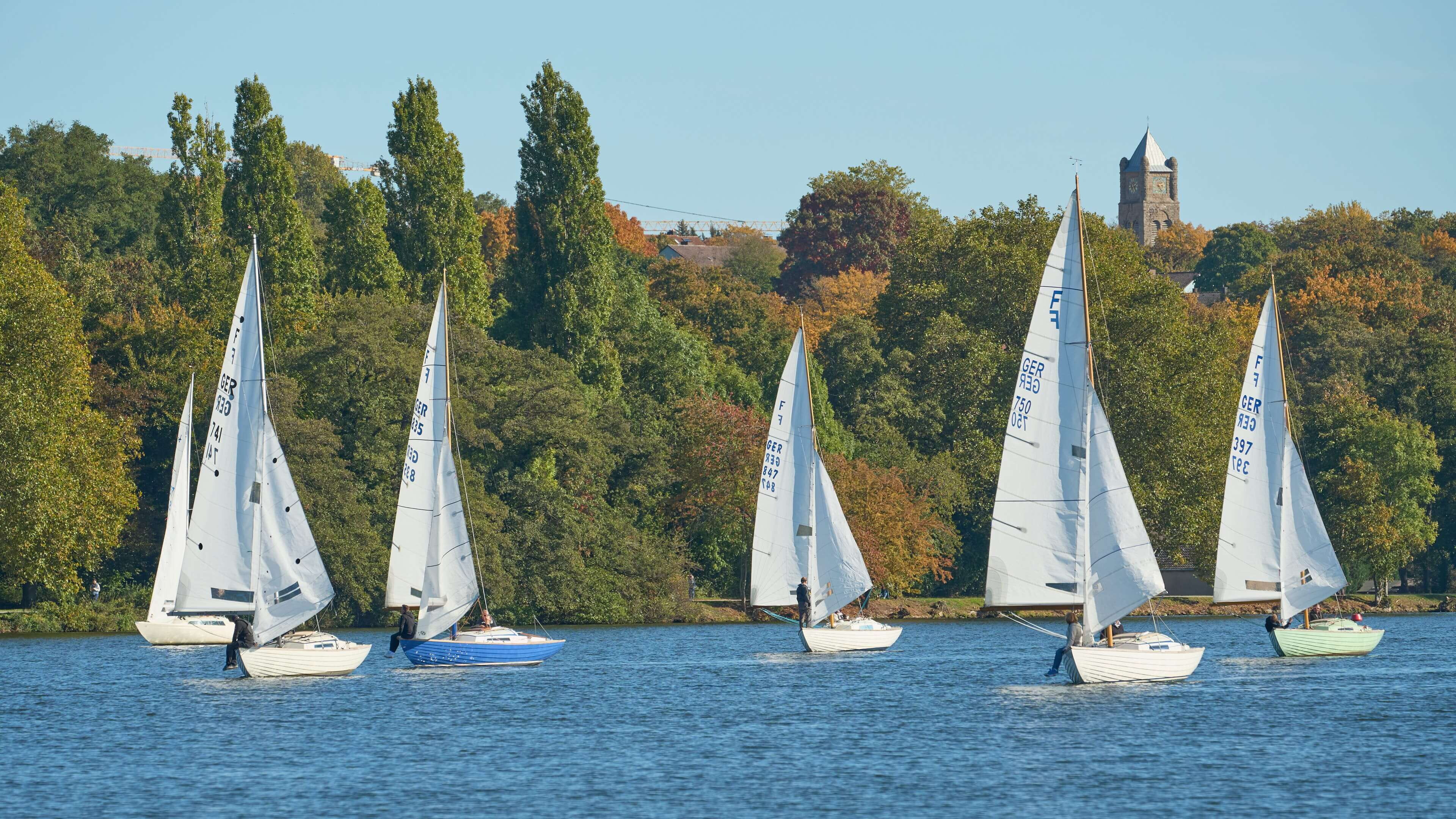 Bei goldenem Oktoberwetter und bestem Wind um 3 bft aus WSW ging es Samstag pünktlich um 12.00 Uhr los, und es konnten bereits drei spannende Wettfahrten ausgesegelt werden. Der Sonntag begann mit typischem „Ritterhumpen-Wetter“, also Sonnenschein, Kälte, Frühnebel über dem See und „Toten“-Flaute. Doch, nach Lichten des Nebels und einigen Tassen Heißgetränke kam noch eine schöne Brise aus SO auf und ließ eine vierte, wiederum spannende Wettfahrt zu.