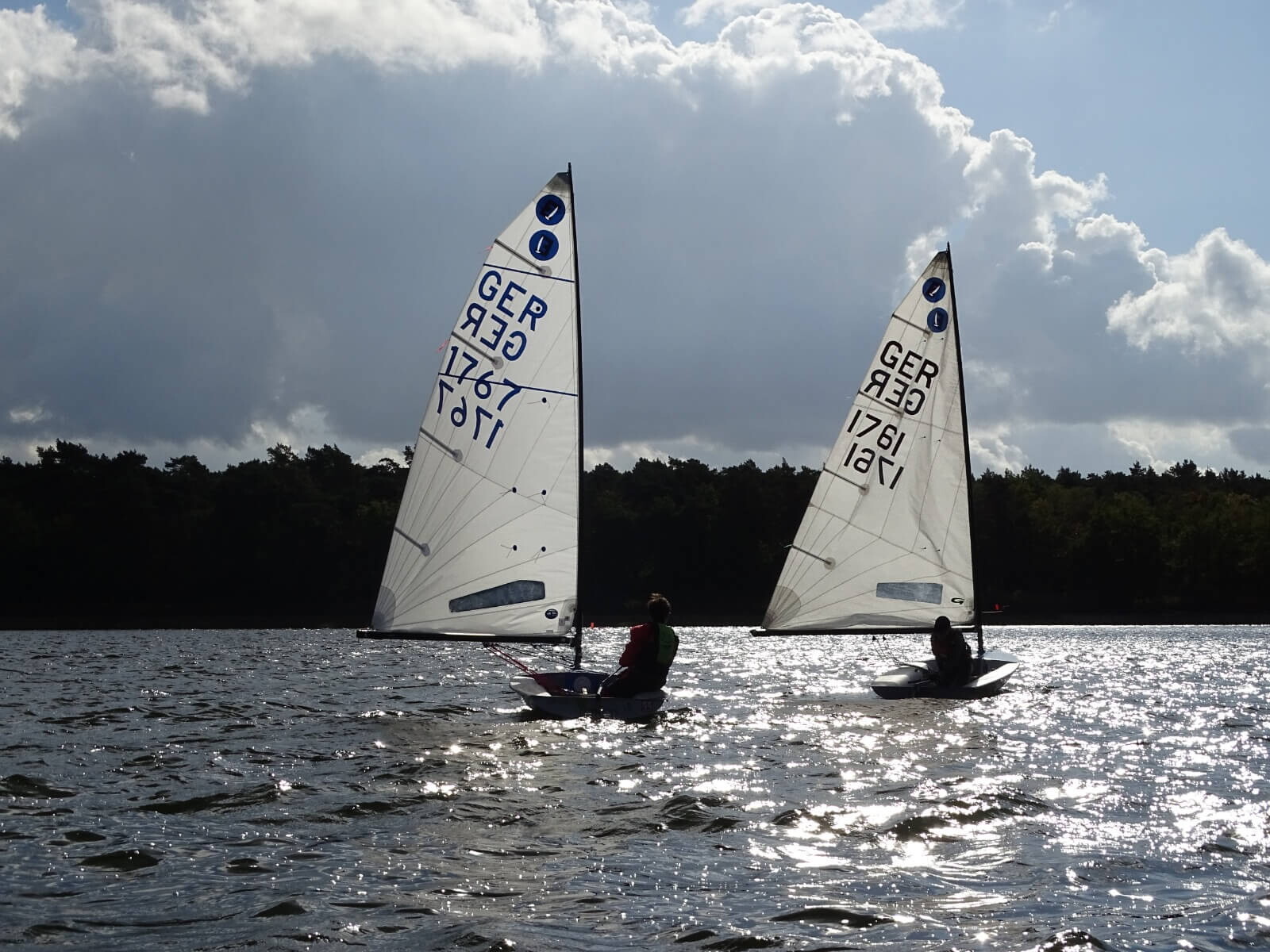 Sie lenken den Wind ab und verwirbeln ihn, was besonders an der Luvtonne zu spannenden Positionskämpfen führte, vor allem direkt nach den Starts, wenn das Feld noch dicht beieinander lag, mussten die Seglerinnen und Segler besonders aufmerksam sein. Insbesondere für einige Teilnehmer in der OK-Jolle mögen die Bedingungen in Haltern eine großer Kontrast zur vorherigen Regatta gewesen sein. Während der Europameisterschaft in Bandol an französischen Côte d´Azur segelten sie Anfang Oktober noch bei Mistral und bis zu zwei Meter Mittelmeerwelle.